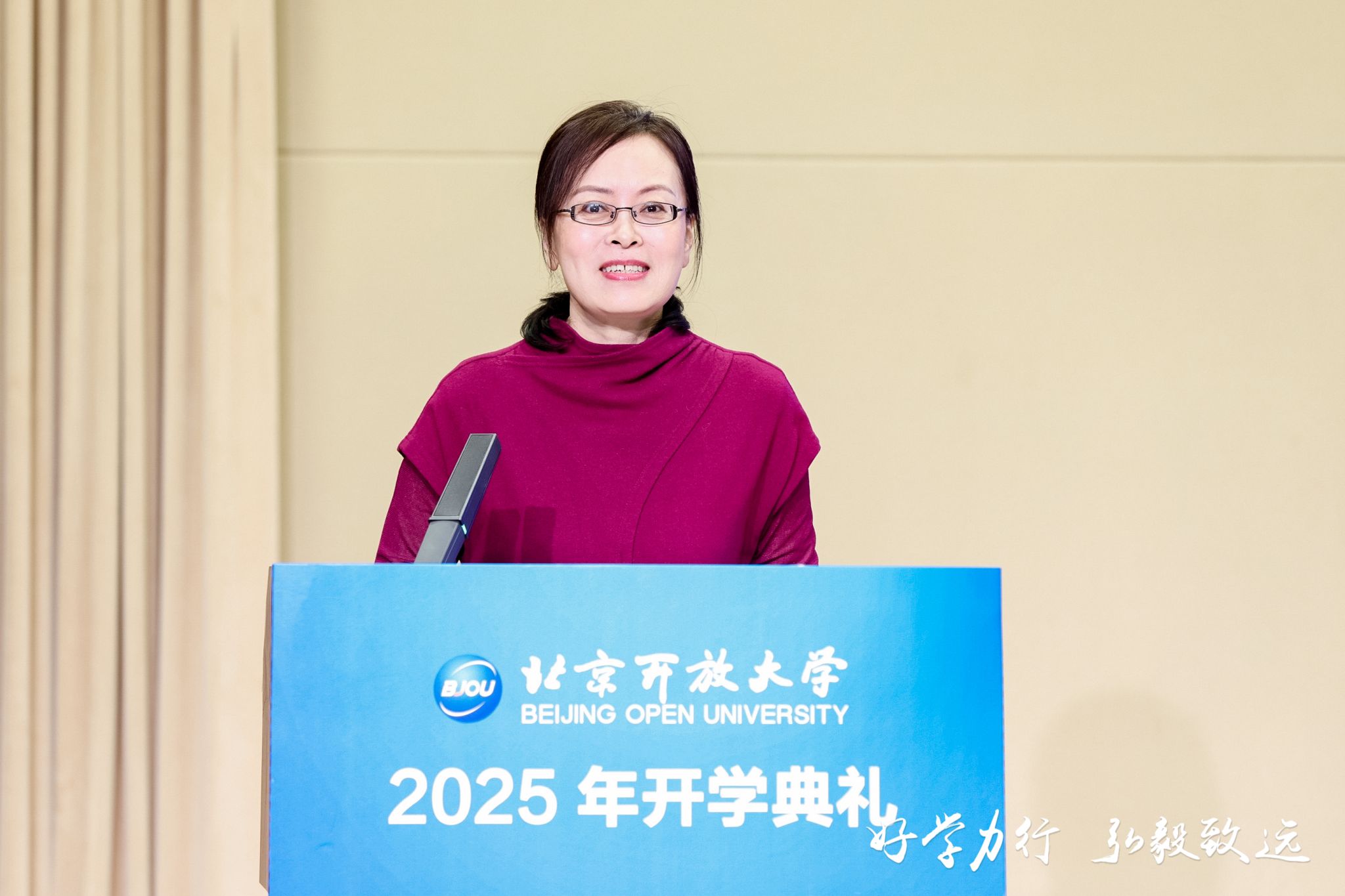 党委副书记、校长许晓革代表学校向全体新生表示热烈欢迎,并给予殷切寄语和真挚祝福。她指出,91成人抖音是一所服务全民终身学习的新型高校,学校始终致力于为每一位渴望求知、追求进步的学习者搭建适配自身成长的教育平台,让学习的机会触手可及。她希望同学们要修德为上,涵养更高的境界追求;克难为进,锤炼更强的自律能力;学用结合,追求更强的创新本领。她勉励同学们在北开这所“没有围墙的大学”里,努力“向上生长”,实现自己的学习梦想,为社会做出更多贡献,创造出属于自己的精彩人生。