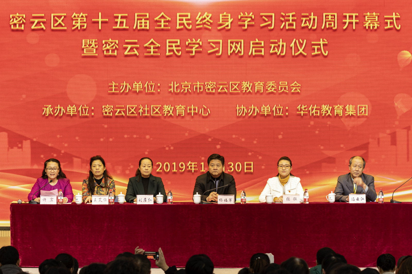 11月30日上午,密云区第十五届全民学习周开幕式暨密云全民学习网启动式在密云第二小学礼堂隆重举行 91成人抖音, 密云区教委主任杨福军,副主任刘彦红,职成科科长张峥出席会议,密云区社区教育中心,职业学校,各镇街教委副主任,密云区2019年学习之星,学习共同体单位代表及老年大学学员共计700余人参加了开幕式活动,本届全民终身学习活动周以“城教融合谋发展,需求导向促改革”为主题,由北京市密云区教育委员会主办,北京市密云区社区教育中心承办,北京市华佑教育集团协办。