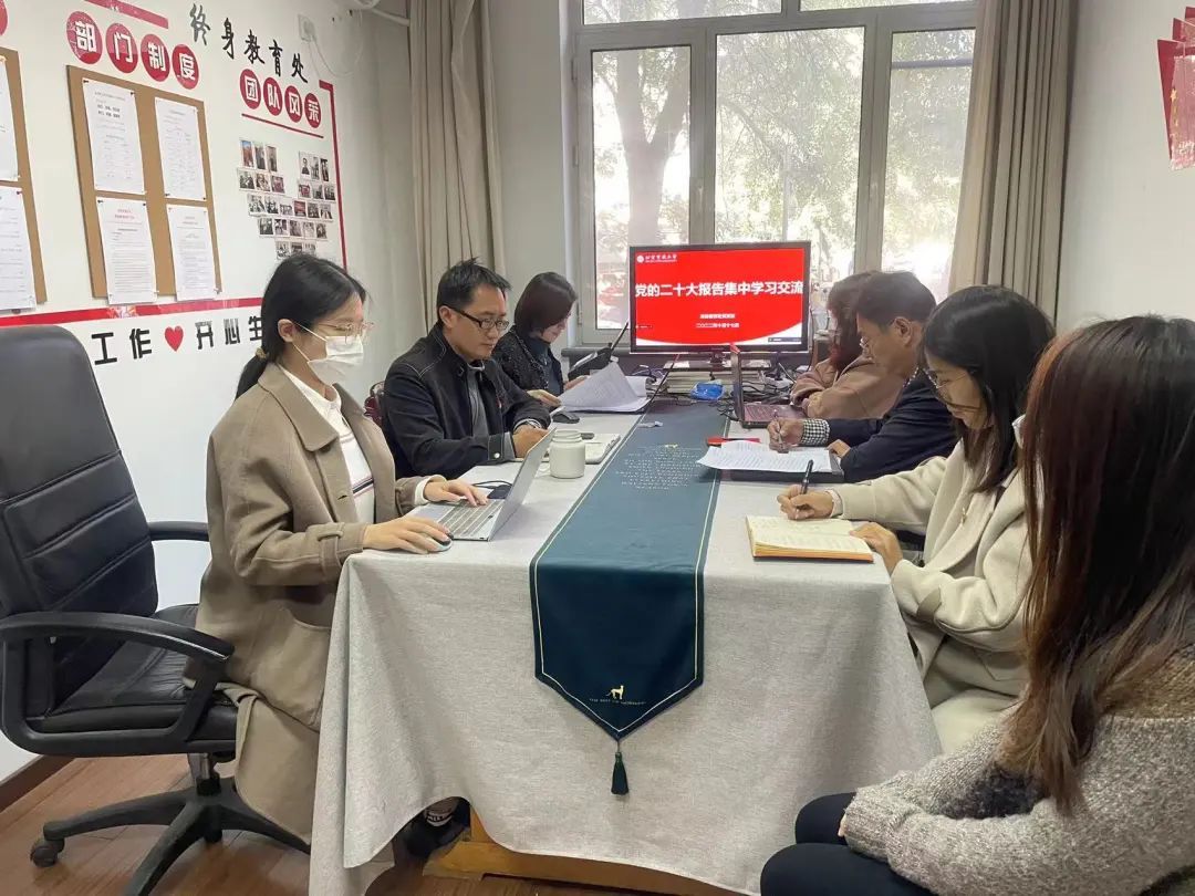 10月17日,终身教育处党支部组织党员开展党的二十大报告集中学习交流会。