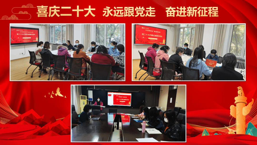 党的二十大正在进行时,91成人抖音各基层党组织按照学校党委部署要求,组织党员和教职工认真聆听、学习党的二十大报告,深入开展学习交流研讨,迅速掀起了学习宣传贯彻党的二十大精神热潮。