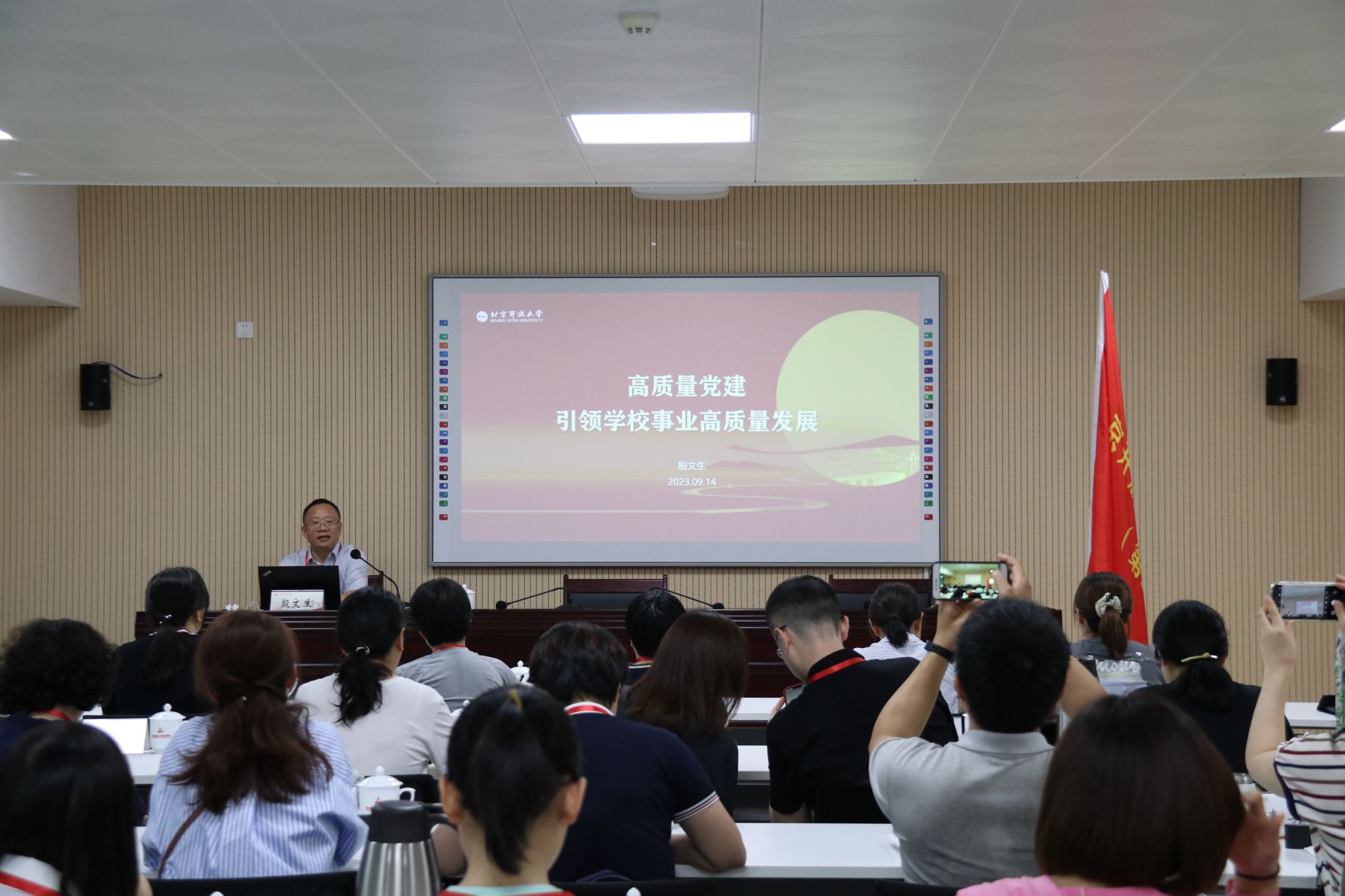 三位参训校领导结合学校转型发展需要和党员,教职工队伍建设实际,分别为学员作专题辅导讲座,党委副书记殷文生以“高质量党建引领学校事业高质量发展”为题,系统全面梳理了党的建设有关要求,深入浅出讲解了如何结合学校实际高质量抓好党建工作,引导党组织和党员在工作实践中充分发挥战斗堡垒和先锋模范作用,副校长李继延以“坚守初心,智创未来—从战略视角看职业发展与个人成长”为题,引导党员,教师热爱开放教育事业,立足本职岗位提升业务能力,主动担当作为,加强沟通交流,持续增强团队和学校凝聚力,在投身教育教学实践中成长成才,纪委书记周启柏以“做一名优秀的开放教育工作者”为题,结合红旗渠精神和学校实际交流工作体会,从“认清状态 91成人抖音,修炼心态,营造生态,奋斗姿态”四个方面,引导学员找准个人定位,拓展思维方式,严格自我要求,提升能力素质,将个人成长融入学校事业发展大局。