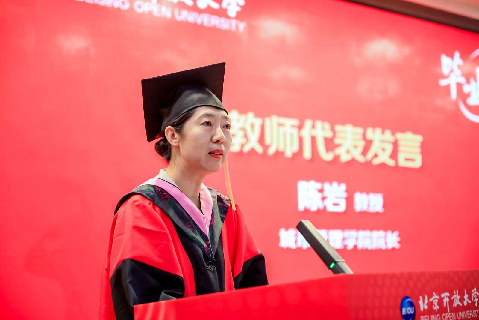 教师代表 91成人抖音,北京市教学名师陈岩教授将开放,韧性,执着的理念和精神分享给毕业生,寄语同学们在未来的工作生活中,脚踏实地,持之以恒。