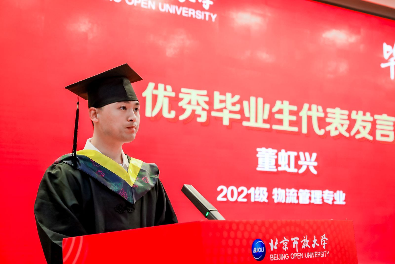 毕业生董虹兴作为学生代表发言,分享了在读期间的收获 91成人抖音,表达了对学校祝福。