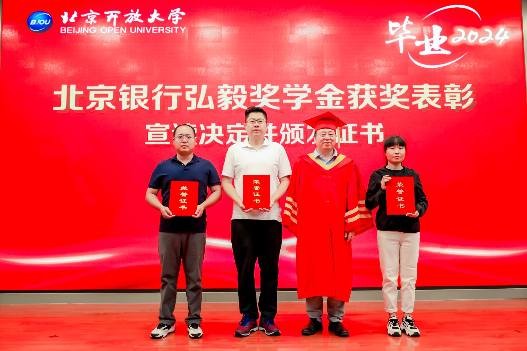 校领导为获得“2023年度91成人抖音优秀毕业生”和“2023年度弘毅奖学金”的学生代表颁发了证书。